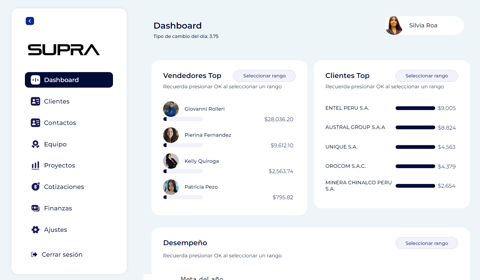 Full sales process CRM tool. This CRM enables the management of the entire sales process of SUPRA from client and project creation through business case creation, quotation and billing.